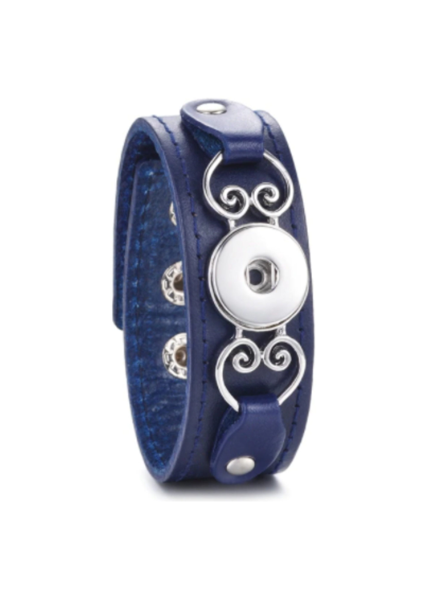 This blue snap bracelet is 22 cm in length and is compatible with all 20mm Oh Snap! Snaps.
